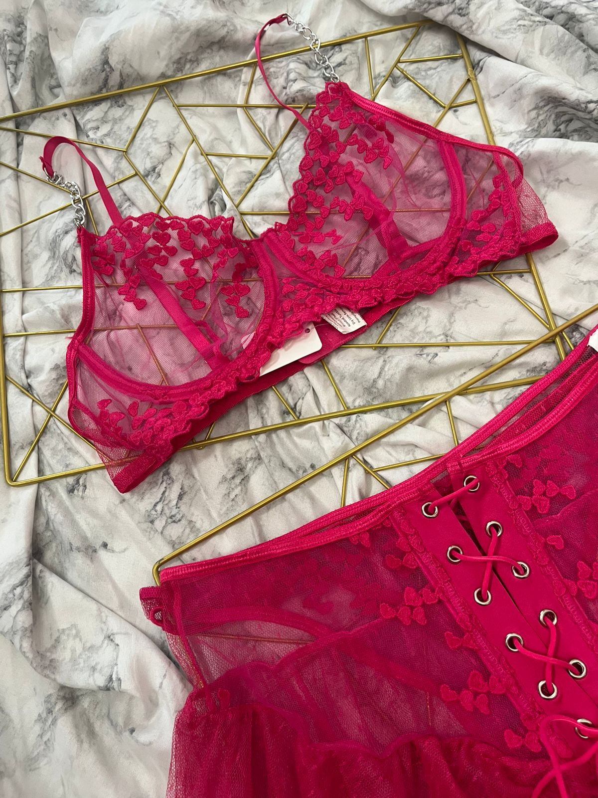 Disponible en varias tallas. ¡Déjate conquistar por este conjunto de lencería y añade pasión a tu colección!